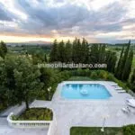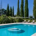 This stunning property in Italy has a surface area of 500 sqm – 5,380 sqft with 6 bedrooms and 6 bathrooms spread over over three levels, with independent entrances on the ground and first floor. The door on the basement floor, in front of the pool area, opens onto an independent apartment (70 sqm) made up of a living room, spacious kitchen, bedroom with bathroom and laundry.