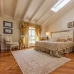 On the 1st floor, reached via the elegant monumental staircase at the rear of the main floor, is the sleeping area of the villa made up of a master suite with a private bathroom, two double bedrooms (also with a private bathroom) and a single bedroom with bathroom. From this last room, through a staircase, one can finally reach the last single bedroom located in the turret and offering a stunning panoramic view over the surrounding countryside.