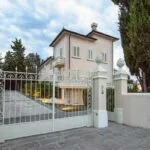 The villa stands in its own 4,000-sqm private park and features two independent accesses. The first, the main one, is embellished by a characteristic tree-lined avenue leading directly in front of the villa, right next to the pool area. The second one, more private, leads to the rear of the villa and to the private parking area.