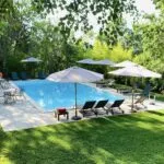 The agriturismo is set within approximately 3.5 hectares (8.6 acres) of landscaped grounds with mature trees, lawns and established gardens. A 15 × 7 metre swimming pool is positioned in a secluded area of the park, offering privacy for guests. A former tennis court remains on the property and could be restored or repurposed depending on business requirements. The grounds currently also provide parking for guests.