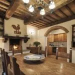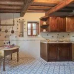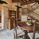 Apartment Spoleto includes living and dining rooms, a kitchen, and three bedrooms served by two bathrooms. In total, the main building accommodates ten bedrooms and ten bathrooms.