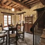 The agriturismo occupies a restored 18th-century hamlet developed around an earlier 16th-century fortified tower. The main building provides approximately 877 square metres of internal space and has been carefully renovated to preserve traditional Umbrian architecture, including stone and brick walls, wooden beams, terracotta and parquet floors, and original stone fireplaces. The structure is currently arranged into four independent guest apartments, each with private entrances and full living facilities, making the property suitable for short-term rentals, holiday accommodation, or continued agriturismo operations.