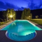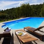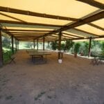 The house is surrounded by 3,800 sqm of a well-kept garden, decorated with hedges, ornamental plants and flowers that give colour in summer. In front of the house is the 14 × 6 m swimming pool with a sunbathing area and a gazebo where poolside dinners and breakfasts can be organized.