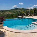 An 18th-century farmhouse, also fully restored, currently operates as an Agriturismo with six bedrooms, three bathrooms, a professional kitchen, dining areas, and a panoramic terrace. The Agriturismo also features a 12 x 5-metre swimming pool with changing rooms and a solar energy system.