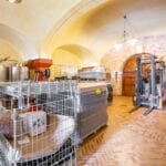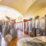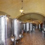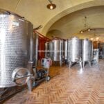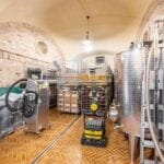 The wine cellar covers 330 square metres and is built mostly underground to provide optimal conditions for wine production. It includes a tasting area and modern production facilities.