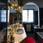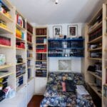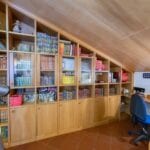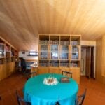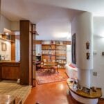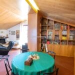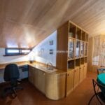 Climbing further via an open staircase, you reach the attic where there is a large open space with a fireplace, a study room with large wooden bookcases and a terrace. On this level, there is also a bathroom and a technical room.