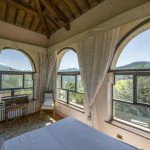Turret (on two levels): a bedroom with four glass walls and underlying bathroom.
