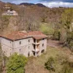 The farmhouse (387 sq m) unfolds over three floors and is divided into two distinct wings. The old building (165 sq m) is made of stone and brick with wooden floors and terracotta tiles. The second wing (222 square metres) consists of an extension made of reinforced concrete and covered in stone like the original building. The facade has two terraces. The original idea was to divide the completed farmhouse into three apartments, joining the old wing with the new one.
