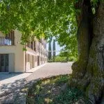 The 14,000 sqm (3.5 acres) fenced park surrounding the building includes a 12 × 6 m swimming pool with a paved sunbathing area and ample privacy thanks to mature trees. The outdoor space is well-suited for private events and ceremonies and includes gravel-covered areas suitable for additional guest parking.