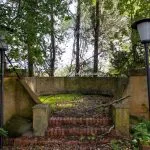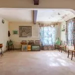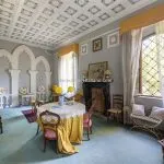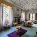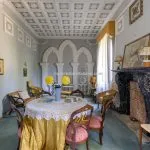 The ground floor contains the primary living spaces with cosy decorated rooms, and a private chapel, with multiple entrances from the surrounding garden. Interiors retain original Art Nouveau elements.