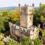 In the Chianti hills near Impruneta, this stunning Art Nouveau castle tower is for sale, requiring full renovation. The property is well situated just under 2 km from a nearby town with essential services and less than 30 minutes by car from central Florence. Access is convenient via a short 170-metre unpaved road from the municipal route. The proximity to the city does not detract from the great tranquillity of the area, which is characterised by few buildings and the absence of busy roads.
