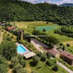This Tuscan Estate property is made up prevalently of buildings dating back to the 19th century, fully and finely restored to preserve those characteristics typical to Tuscan countryside structures. External stone walls, brought back to their original beauty, clash with plastered and painted internal walls granting brightness to the interiors. Other classy details include the beautiful wooden beams sustaining the roofs and the high-quality terracotta floors arranged in fishbone style.