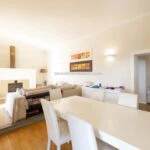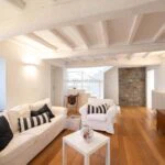 – Apartment N°5 (133 sqm – 1,431 sqft), fully restored in 1998, is laid out onto two floors: we find a living room with sofa-bed, fireplace and kitchenette on the ground floor, while there are 3 double bedrooms and 2 bathrooms.