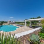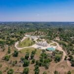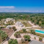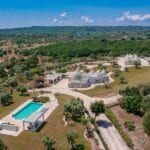 - MAIN FEATURES: Stone walls, vaulted ceilings, fireplaces, trulli, modern appliances and systems, garden, paved terraces, salt-water swimming pools, ample outdoor areas, covered outdoor dining corners, BBQ, possibility of creating a helipad