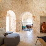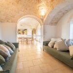 The interior of the trullo, which is a singular style of structure that can only be found in a particular region of Apulia, has been updated with contemporary fittings and amenities to provide the highest level of convenience and comfort that can be found in the 21st century, but these upgrades have been made in a way that does not compromise the traditional feel of the structure.