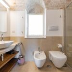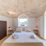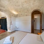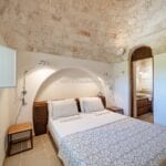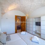 Trullo A has a surface area of 210 sqm – 2,260 sqft with 3 bedrooms and 3 bathrooms and opens with a beautiful vaulted living area with an archway leading into the kitchen facing the pool area. Beyond that, there are two sitting rooms and a studio. From the living area, a door leads to the first sleeping area made up of two double bedrooms with an en-suite bathroom. A hallway departing from the studio then leads into the master bedroom with an en-suite bathroom and view over the pool area.