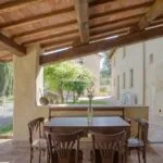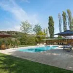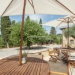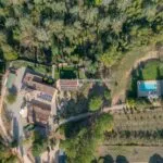 The property covers, in its entirety, about 11.7 hectares (28.9 acres) of land. Around the farmhouse stretches the wooded park (about 9,900 sqm) dotted with flowers, fruit trees and aromatic plants typical of the Tuscan countryside. Between the buildings is also a paved courtyard with space for private events and ceremonies. A short distance from the buildings, about 60 m, is a 12 x 6 m swimming pool with a stone-paved sunbathing area and shade canopy, also ideal for aperitifs and poolside dinners.