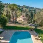 On the Chianti hills, near Certaldo and Barberino Val d’Elsa, is this hamlet with a large restored country villa with a guesthouse, theatre and pool for sale. The buildings (over 800 sq m) have been finely restored and converted into a charming boutique hotel with 13 bedrooms. The 11.7 hectares of land surrounding the property include a park with a swimming pool and a 4.4-ha olive grove.
