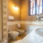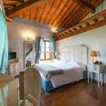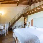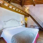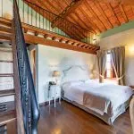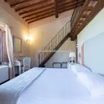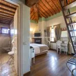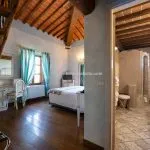 The external staircase leads to the upper floor: upon entering, you find yourself in a spacious central hall that disengages five rooms, all very spacious and with private bathrooms. The four rooms on the short sides of the building also have a spacious roof loft. From the central hall, an internal staircase leads up from the first floor to the panoramic dovecote, where a double bedroom with bathroom and garden view has been created.