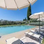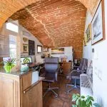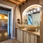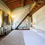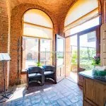 The Leopoldina villa has a surface area of 403 sqm – 4,336 sqft with six bedrooms and eight bathrooms, and is a masonry building in the typical style of the Sienese countryside. Renovated in 2009, the villa retains all of its typical features, including the beautiful vaulted ceilings on the ground floor and the wooden beams on the upper floors. The external staircase reaches directly to the first floor, covering a glazed loggia below.