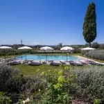 Approximately 25 m from the Leopoldina is the 14 × 7 m swimming pool with stone solarium, surrounded by hedges that shield it from view. At the edge of the pool, various shady pergolas can be used for relaxing on hot summer days or for outdoor breakfasts and/or dinners.