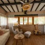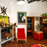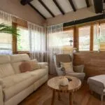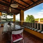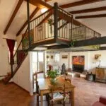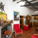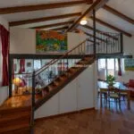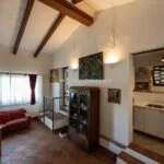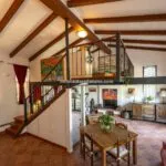 Slightly detached and set towards the valley, Casa Tiziana is an 81 sqm (871 sqft) building featuring a large living room with a fireplace, a dining area, a kitchen, a bathroom, and a loft room above the living room.