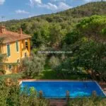 The main villa, covering 572 sqm (6,154 sqft) and comprising four bedrooms and two bathrooms, is a period building centrally located within the hamlet. It is spread over two levels, with living quarters on the upper floor. The ground floor features a wine cellar, tasting area, and service kitchen with an original oven. Upstairs, a large kitchen with a fireplace, a living room with a fireplace, a panoramic loggia ideal for entertaining, four bedrooms, and two bathrooms await. The villa has a 2,200 sqm garden, boasting a 13 × 5 m swimming pool with a stunning panoramic view. The garden also provides access to an outdoor bathroom with a shower and sauna, and a fitness area under an adjacent loggia.