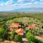 In the heart of a region renowned for its extra virgin olive oil and Chianti wine, this Tuscan estate is surrounded by lush olive groves and vineyards. Located within the geographical triangle formed by Arezzo, Siena, and Florence, it offers the perfect blend of tranquillity and accessibility. The town of Pergine Valdarno, providing essential services, is less than 2 km away, and Florence International Airport is just an hour’s drive.