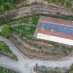 The property is encircled by a 4,700 sqm beautifully landscaped garden, fully fenced and adorned with hedges and ornamental flowers. Below the farmhouse is an 11 × 5 m swimming pool, offering panoramic views of the surrounding hills. The event hall is complemented by a large private car park (approx. 2,500 sqm) with space for up to fifty vehicles.