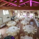 A short distance from the farmhouse stands a newly constructed event hall (400 sqm – 4,304 sqft, 4 bathrooms), built in 2015 on the site of an old barn. This facility, catering to weddings, parties, and events, can accommodate up to 180 guests. It features a vast hall (over 200 sqm) with a fireplace and a mezzanine on the ground floor, while the basement includes bathrooms, a professional kitchen, and a dressing room with a bathroom for staff.