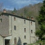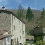 Near to Caprese Michelangelo, a part restored old Tuscan mill for sale divided into 3 apartments, surrounded by 2.3 hectares of land. Would benefit from further investment to enlarge the number of accommodation units and landscaping of the gardens.