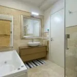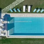 The 12 × 6 m Infinity swimming pool is located not far from the villa and is coated in a slip-proof material. All around there is a travertine-paved solarium.