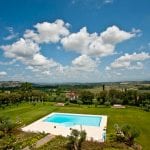 This Tuscan estate for sale sits between the Valdichiana and Val d’Orcia hills, close to Torrita di Siena and Sinalunga. The property includes an important historic villa, extensive grounds and a productive Chianti Colli Senesi DOCG wine estate, making it suitable for private use, a luxury boutique hotel, or an events and wedding venue.