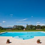 A 22,000-m² landscaped park with mature ornamental planting surrounds the villa. The 18 × 8 m swimming pool sits a short distance from the main building, with a white stone paved sunbathing area. The largely level grounds are well suited for outdoor events, hospitality use and weddings overlooking the surrounding countryside.