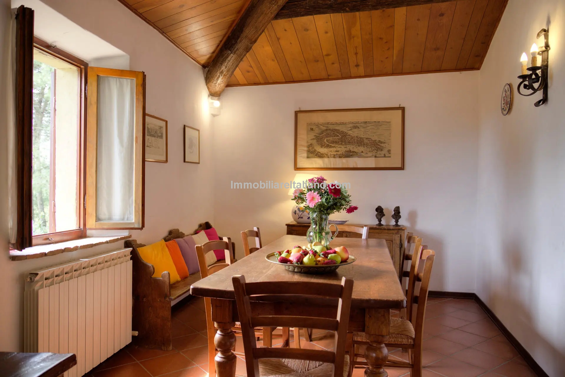 Tuscany organic farm estate with agriturismo, vineyard, olive grove, gardens, stables, pool, and arable and woodland. Excellent commercial property offering several income streams.
