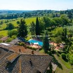 This lovely Tuscan property is located in a panoramic hillside position on the hills of Siena. The estate includes several buildings (over 1,500 sqm) some of which date back to the 13th century and have been converted into an Agriturismo (16 bedrooms) plus a 2-bedroomed apartment used by the owners. Within a mature and well-maintained park garden of about of 13,800 sqm, citrus plants and bougainvilleas frame the 18 × 6 m swimming pool overlooking the Chianti hills, a Jacuzzi whirlpool, available to guests as well as the bocce court, ping-pong table, children’s playground and all the green spaces that include a pond with water lilies and other aquatic plants.