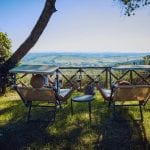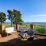 Each apartment has its own reserved area, equipped with sunbeds, chairs and small tables enjoying the views of the Tuscan hills.