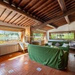 The main villa has a surface area of 622 sqm – 6,693 sqft with a total of 5 bedrooms and 6 bathrooms and has been entirely renovated and converted into a farmhouse with large common areas on the ground floor, breakfast kitchen, laundry and three guest bedrooms (all with en-suite bathrooms on the first floor). An upper floor wing was converted into an apartment, currently used by the owners, consisting of a living room, kitchen with dining area, two bedrooms and two bathrooms. In the basement are the historic cellars, which are nowadays used for storage.