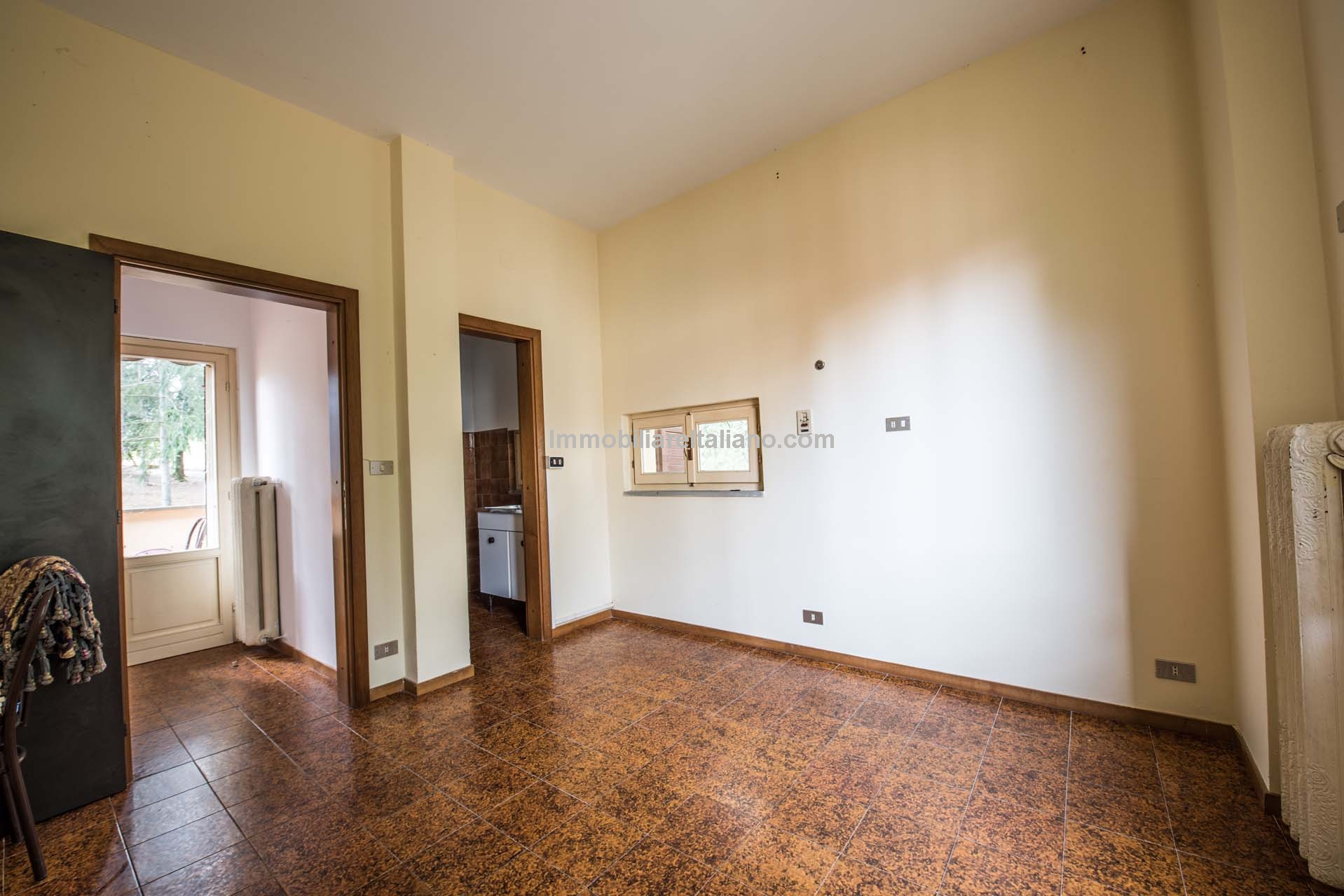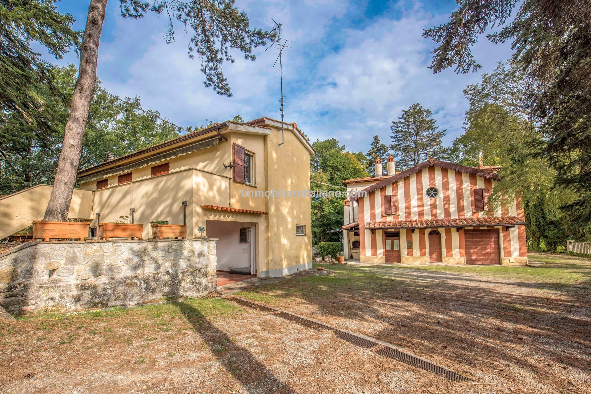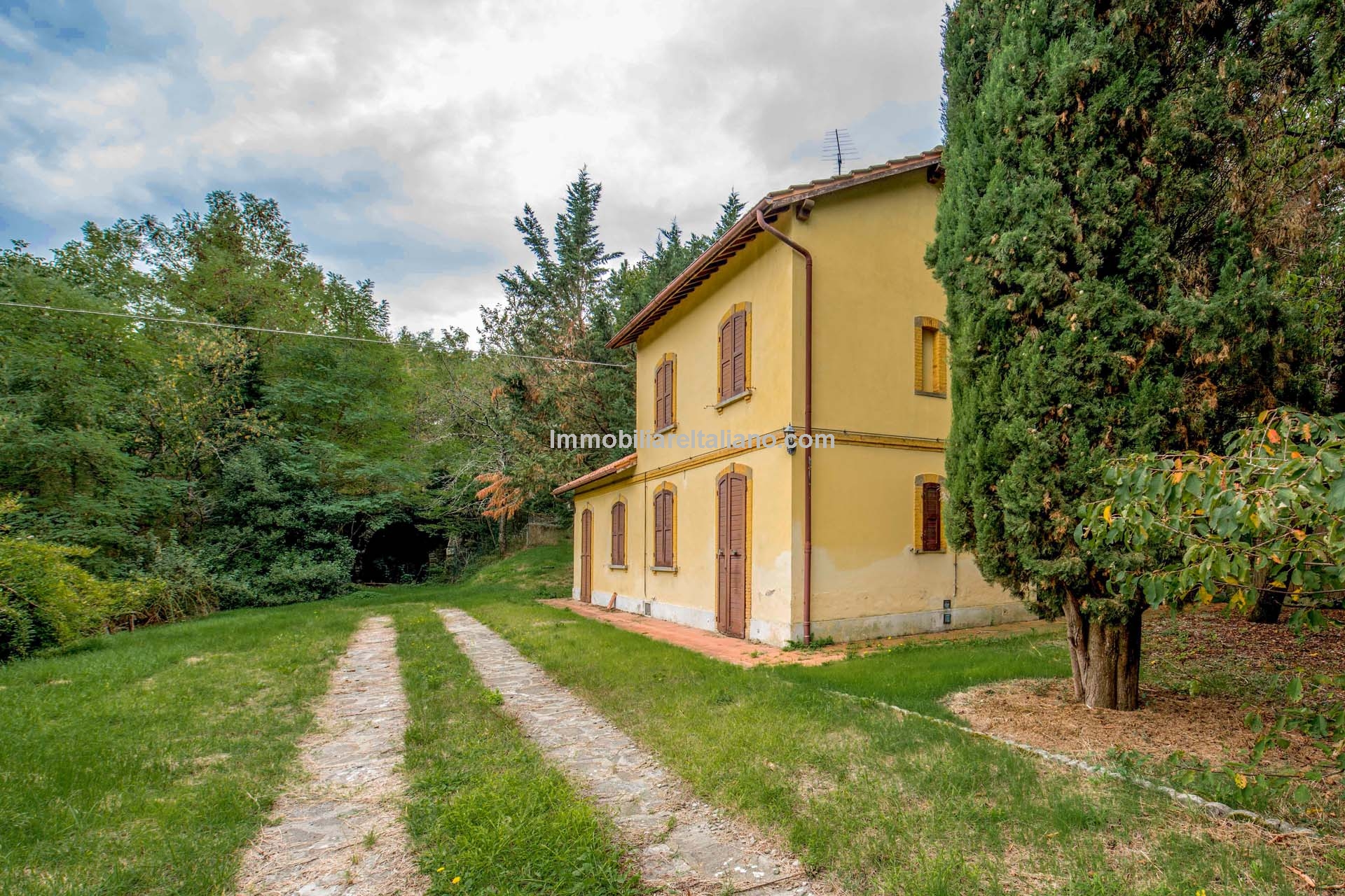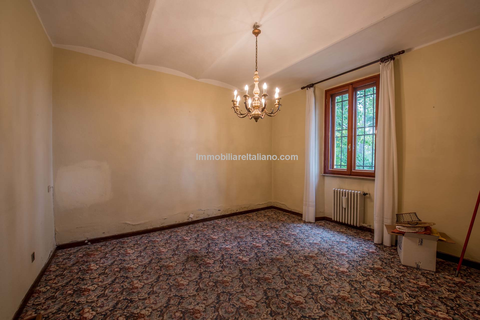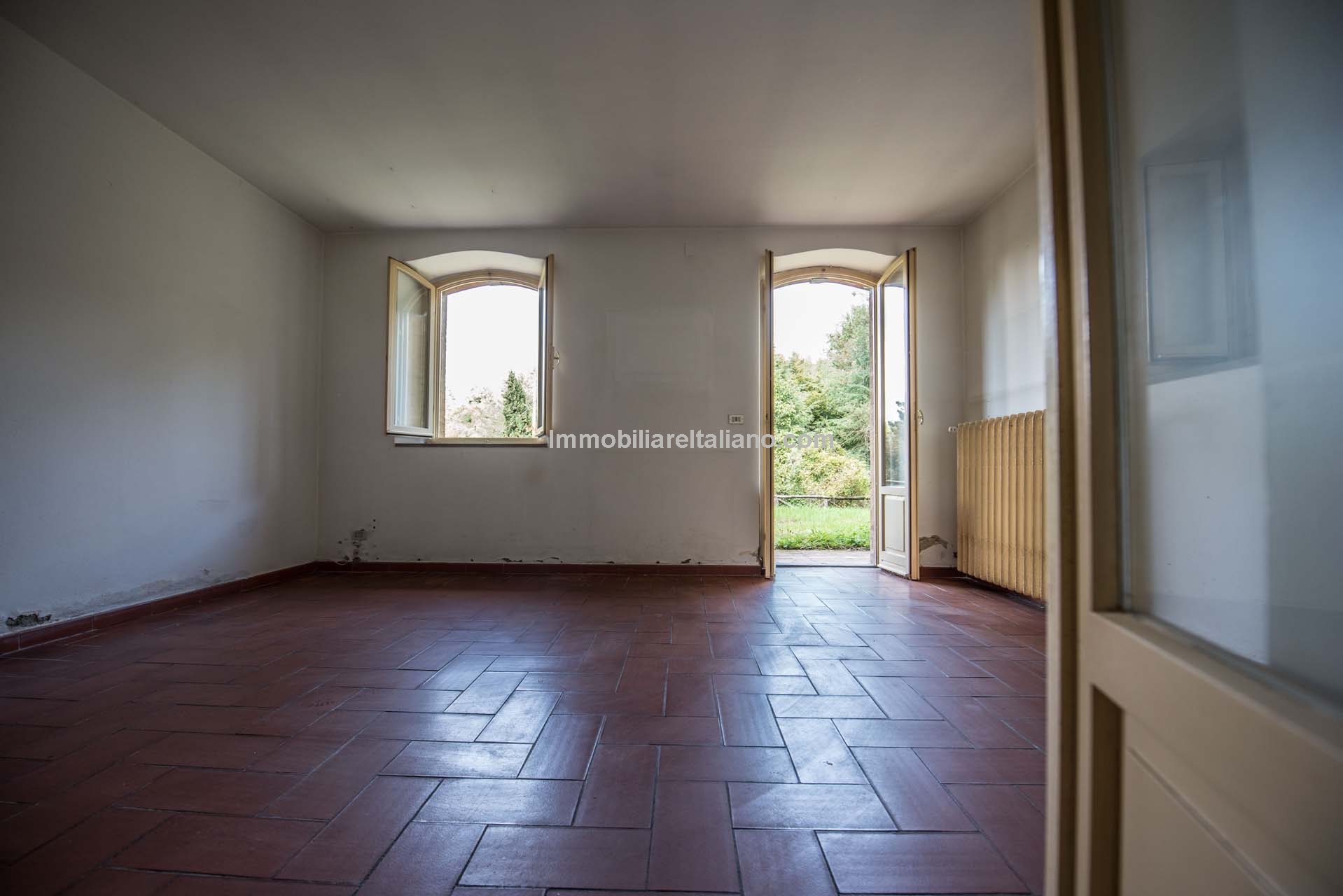 The main villa dates from the 1930s and was structurally consolidated in 2006. It extends to approximately 380 square metres (4,089 sq ft) over two floors. The ground floor includes an entrance hall, kitchen, dining room, living room, bedroom, storage space and a technical room for building systems. The first floor provides six bedrooms and three bathrooms. Architectural elements typical of traditional Tuscan villas remain in place, including stone staircases, fireplaces, wooden beams, terracotta flooring and vaulted ceilings, offering a strong base for renovation.