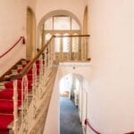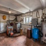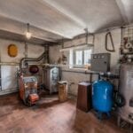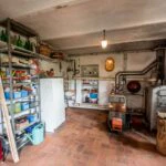 A separate guesthouse of approximately 160 square metres (1,722 sq ft) also spans two floors. The ground floor contains cellars, storage rooms, a vehicle garage and a bathroom. The upper level includes an entrance area, a living and dining room, a kitchen, a bedroom, and a bathroom, making it suitable for guest accommodation or independent living quarters once renovated.