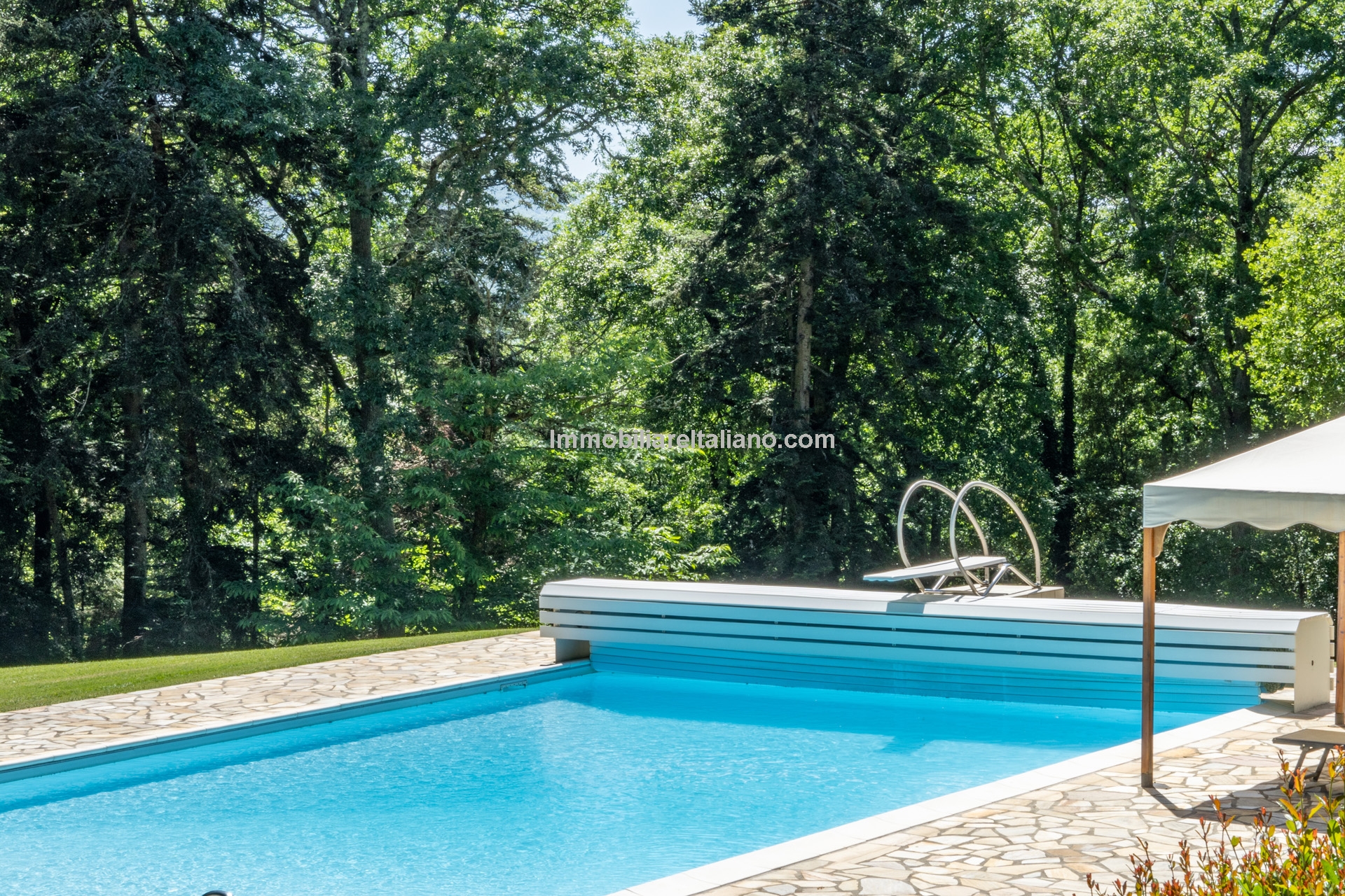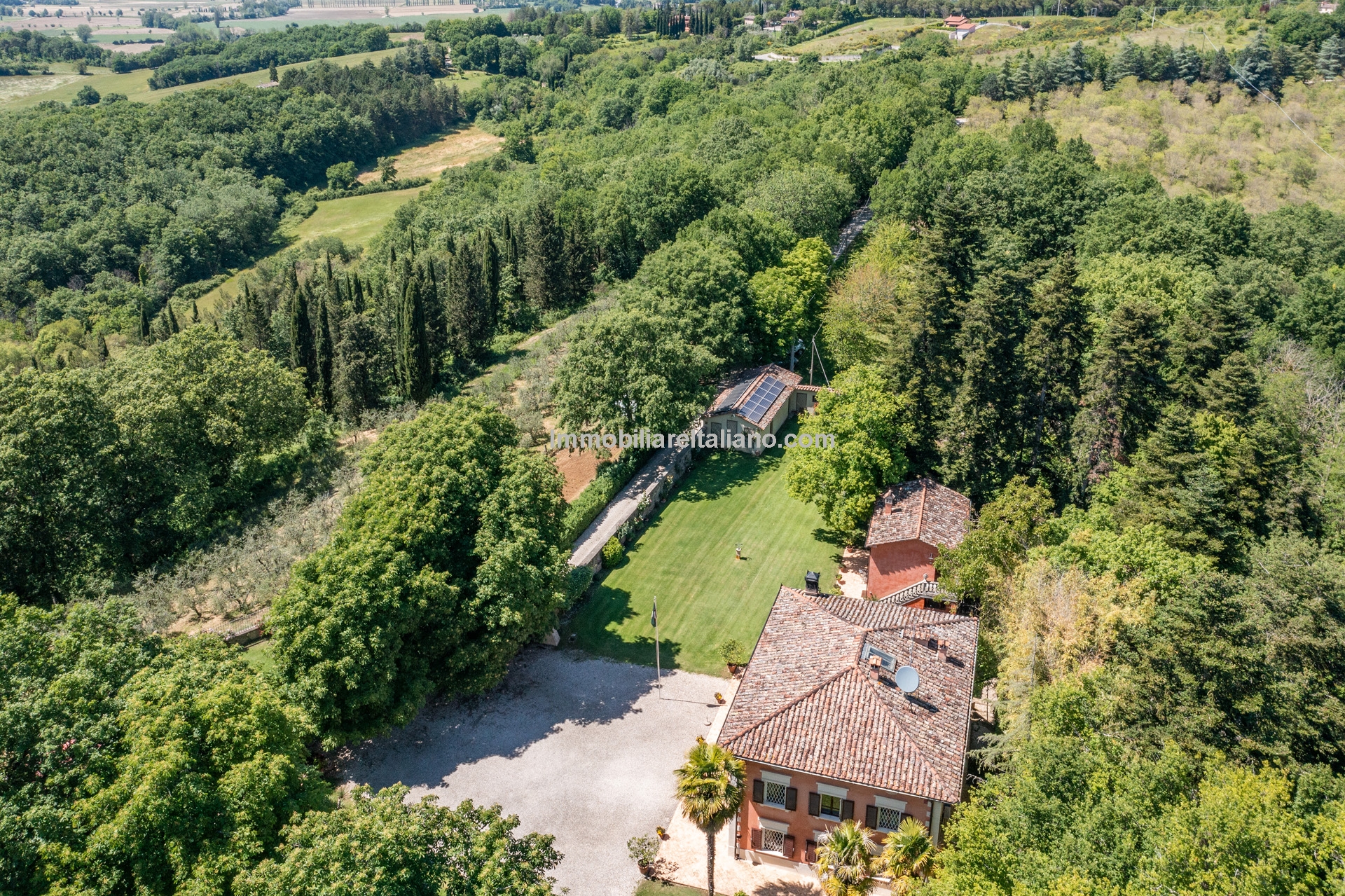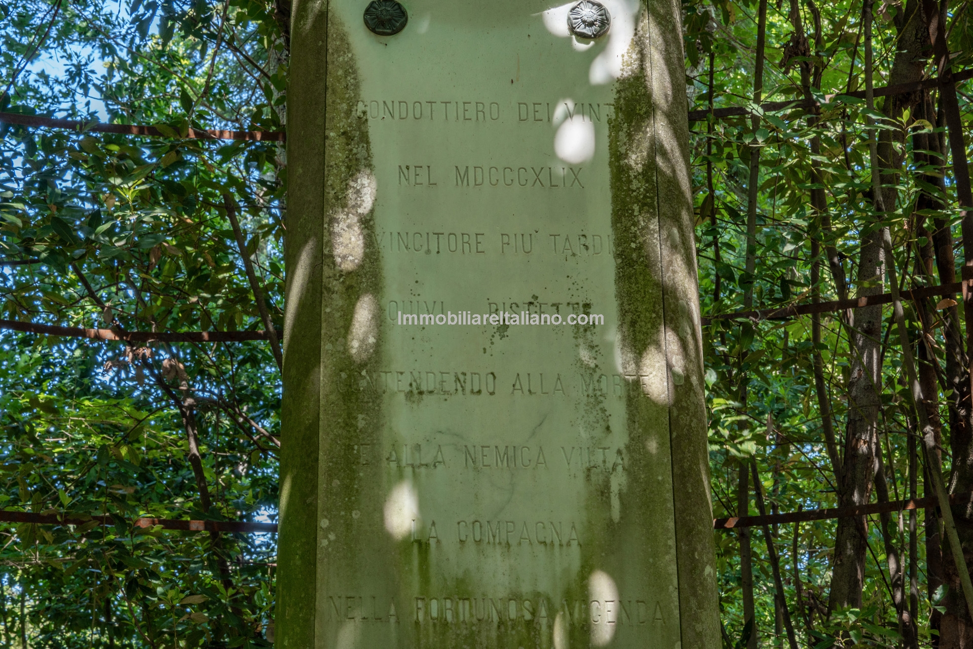 Most of the land is hilly woodland (16.9 ha), offering complete privacy and a natural environment. A statue near the entrance commemorates the passage of General Garibaldi through the area in 1849.