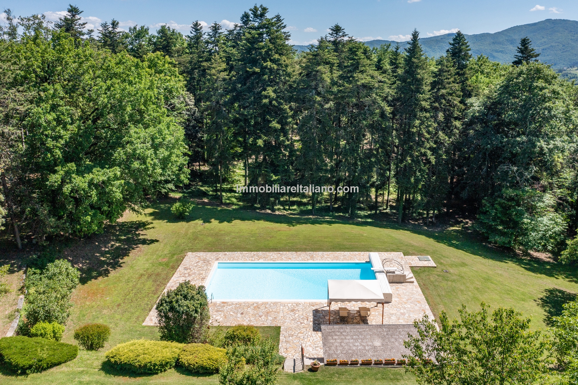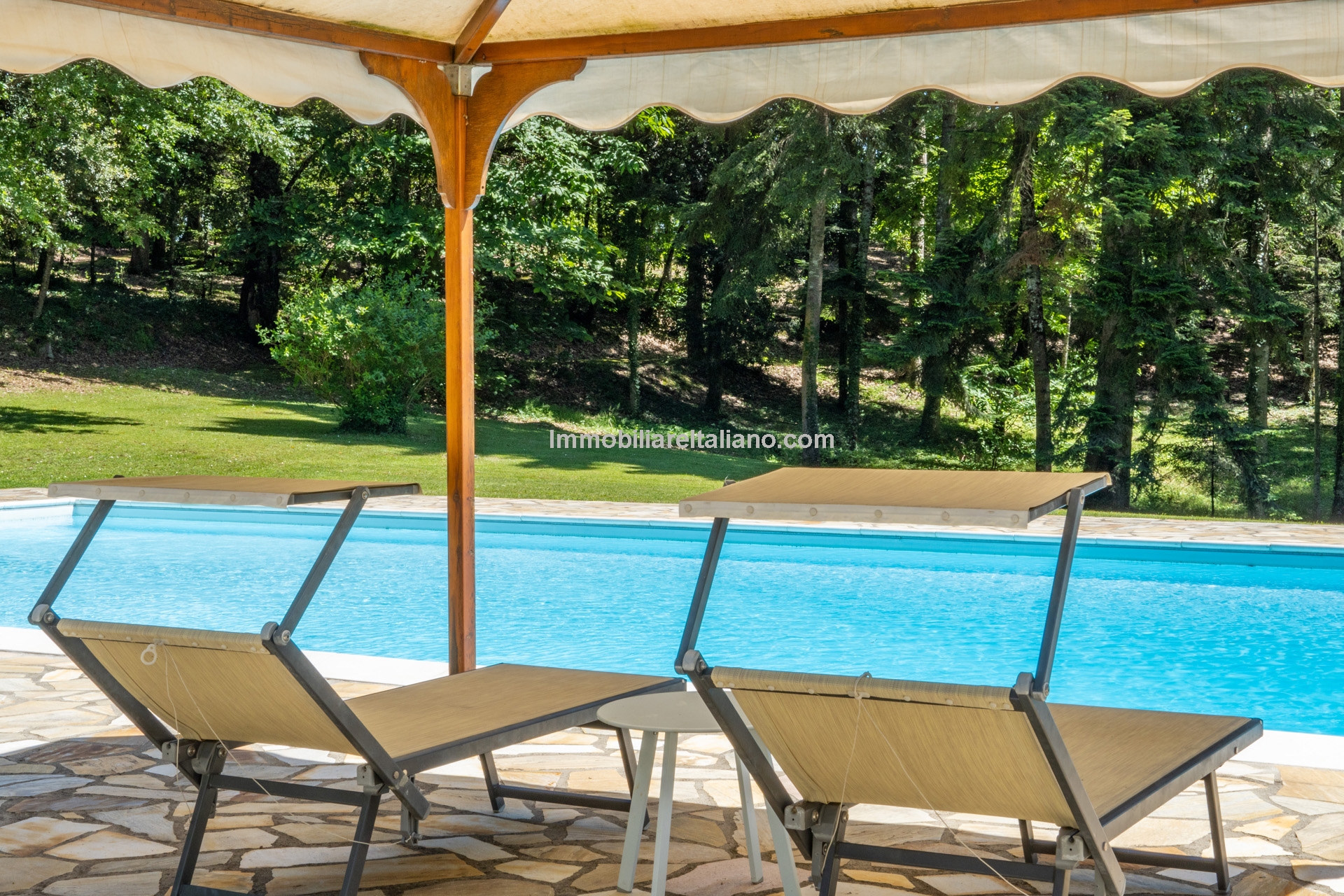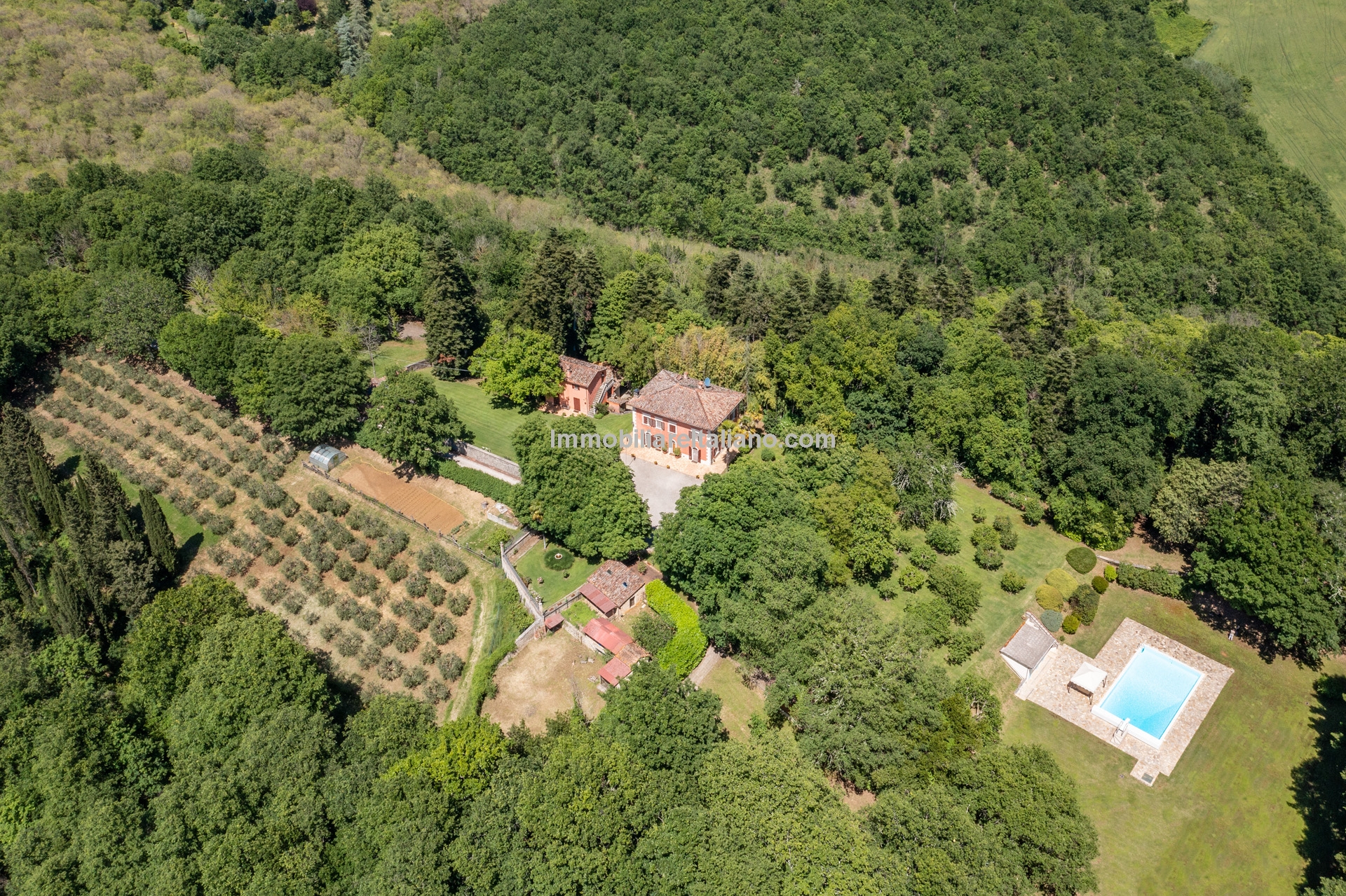 Villa for sale between Citerna and Monterchi with pool, 8 bedrooms, guest apartments, 18 hectares of land and olive trees. Quiet location near the Tuscany-Umbria border.