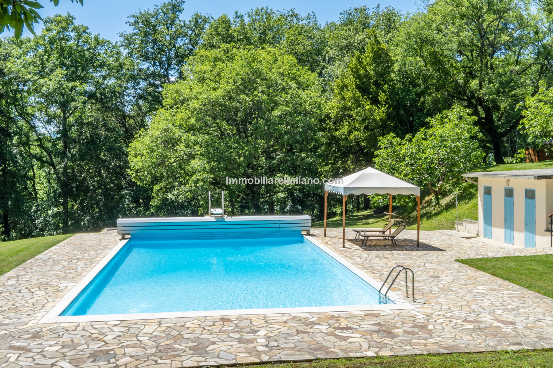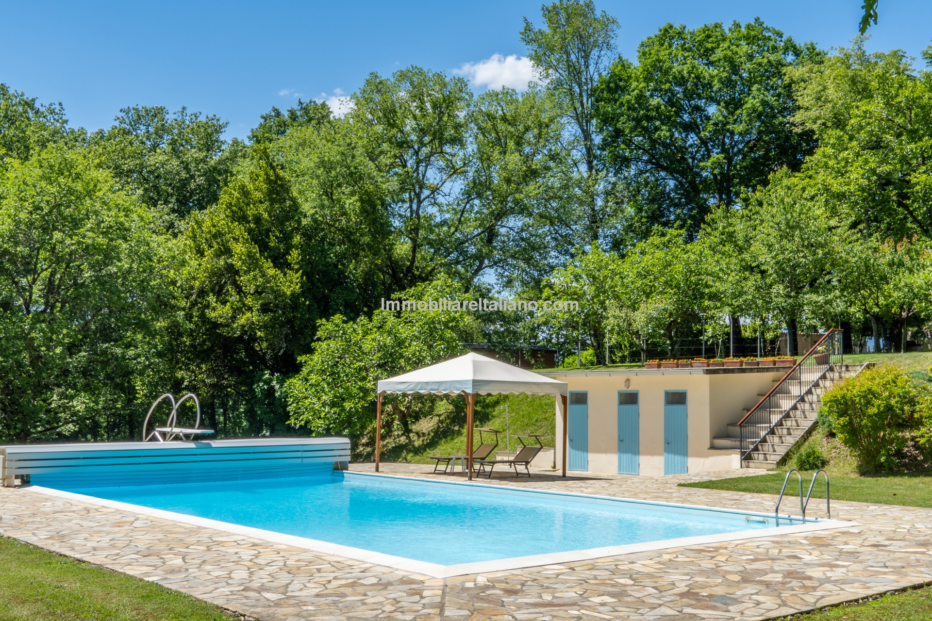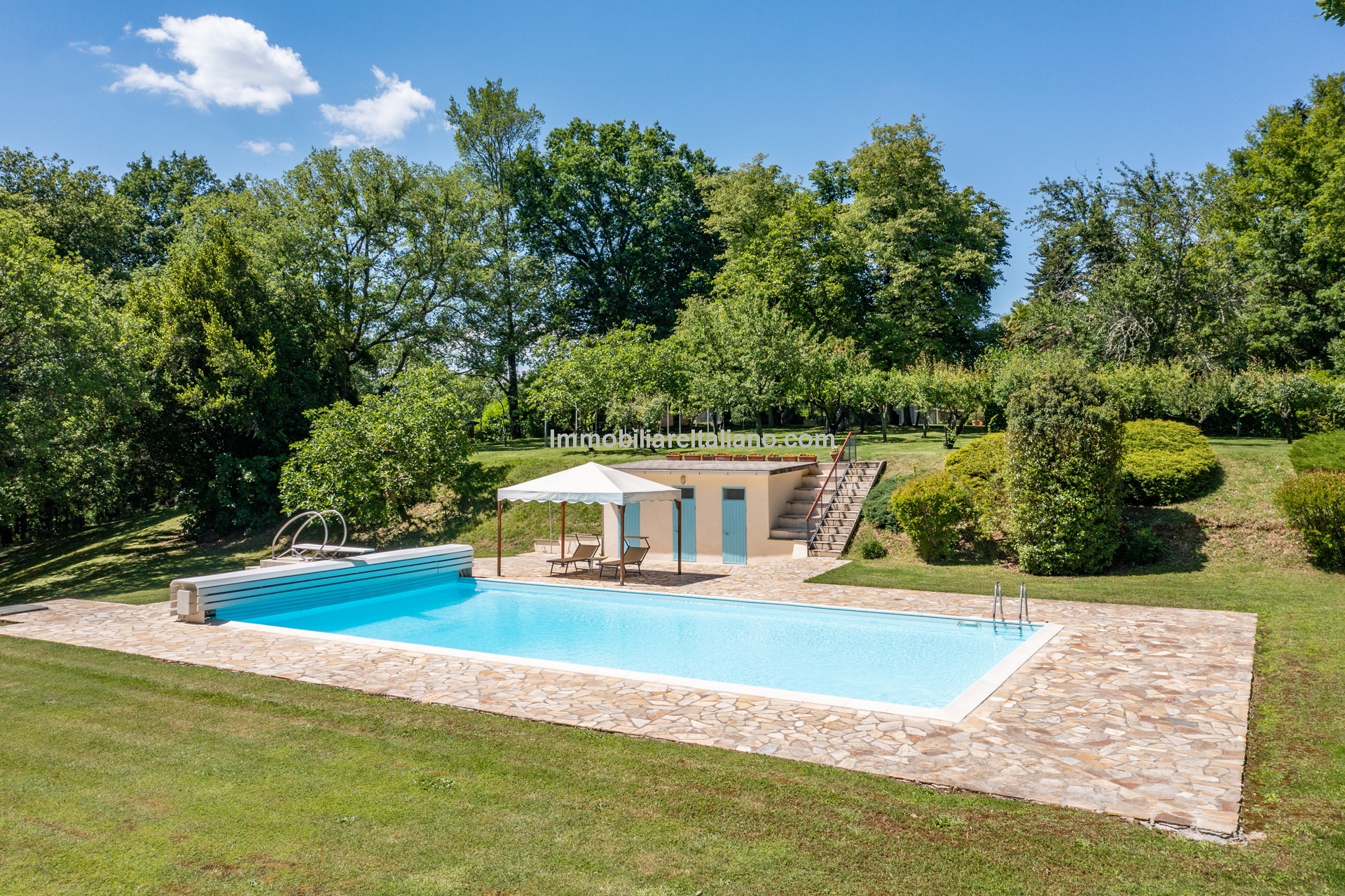 Villa for sale between Citerna and Monterchi with pool, 8 bedrooms, guest apartments, 18 hectares of land and olive trees. Quiet location near the Tuscany-Umbria border.
