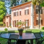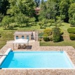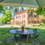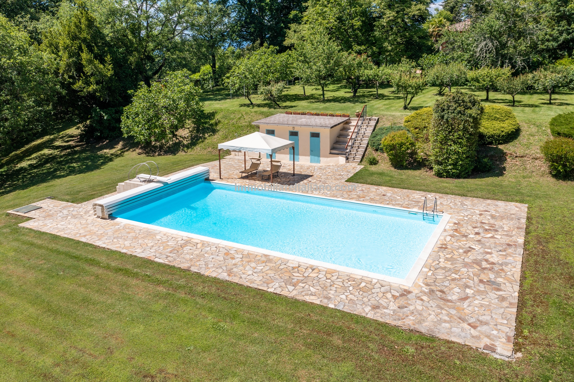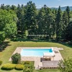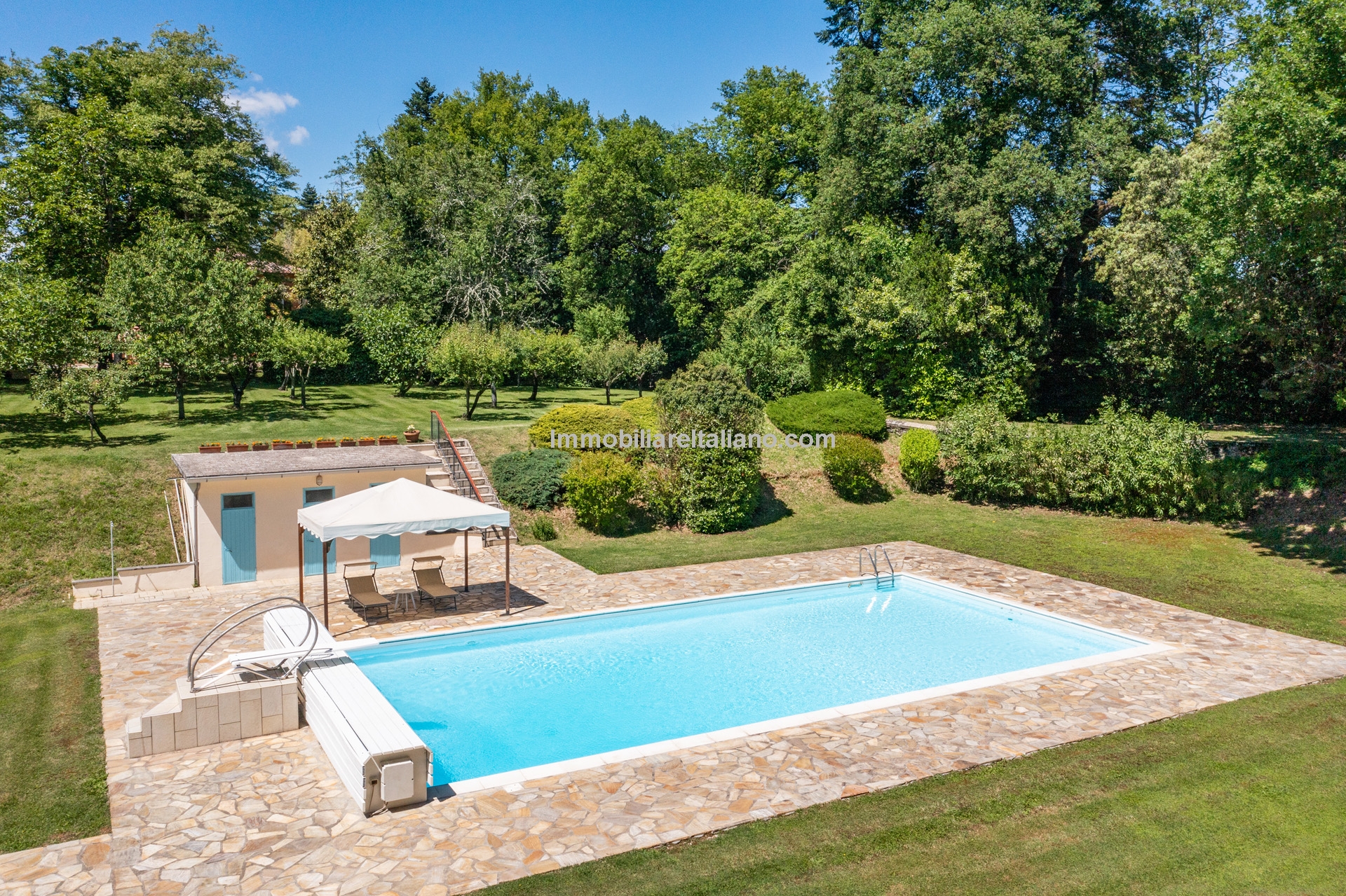 - outbuildings, swimming pool, commemorative Garibaldi statue, garden, olive grove