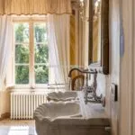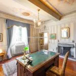 The most recent updates were made in the early 20th century, preserving much of the villa’s 18th-century architectural charm. Inside, the ground-floor reception hall blends Art Nouveau and Renaissance styles, featuring stunning paintings by Vincenzo Barsotti. The first floor boasts a living room adorned with trompe-l’œil frescoes depicting the surrounding countryside, with neo-Gothic details that echo the colonnade once prominent in the villa’s grounds. The bedrooms are decorated with painted curtains in a style that merges Empire influences with 16th-century motifs. The careful restoration has brought these elements back to life, revealing hidden treasures that had been covered for decades.