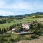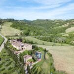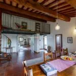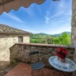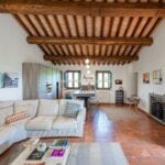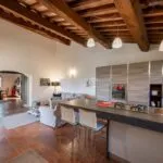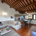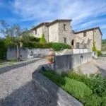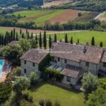 On the green hills of Umbria, just a short drive from the medieval town of Umbertide is this renovated 188 sqm apartment for sale inside a farmhouse. The apartment was originally 2 separate apartments but they have been merged to make one large apartment on the first floor of the building which is reached by external stairs. The two entrance doors open onto two large living areas with a fireplace – dining room with kitchen and sitting room, then connected to three bedrooms and three bathrooms.