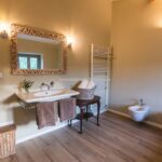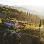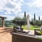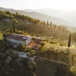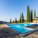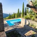 Escape to the tranquil hills of Umbria and discover a restored farmhouse that’s a perfect blend of rustic charm and modern luxury. This stunning property boasts 5 bedrooms and 3 bathrooms across 430 sqm of living space, all set in a panoramic position with breathtaking views. Step inside to find a mix of original and contemporary finishes, including stone walls, wooden beams, and even concrete and teak accents. Designed by renowned architect Gae Aulenti, the property was once a retreat for a famous theatrical producer – and now it could be your very own haven. The farmhouse is laid over two floors, both accessible directly from the in- and outside. On the ground floor are various living areas, all interconnected, a large modern kitchen with a dining area and private office space. A staircase leads from the large dining room to the upper level and into a sitting room with four arches. The floor is entirely dedicated to the sleeping area and houses five bedrooms, three bathrooms and a generous walk-in wardrobe.