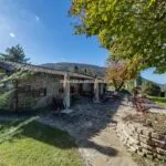 The property is encircled by an 11,000 sqm garden, boasting paved terraces, tall trees, and decorative hedges. A short walk from the buildings is the swimming pool, accompanied by a 20-sqm pool bar, ideal for refreshments and poolside breakfasts. The trees ensure privacy and shade for both the buildings and the pool area. Additionally, there is a tennis court with a floodlight system, located just below the buildings near the pool.