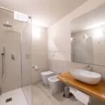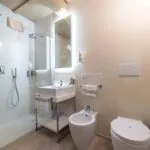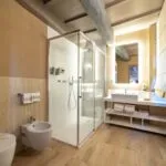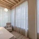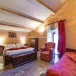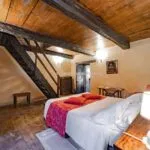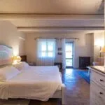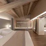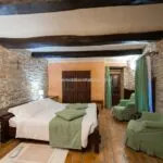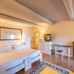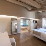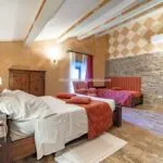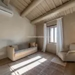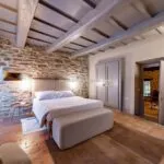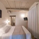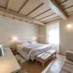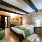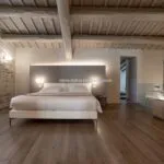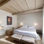 These buildings have been restored to preserve their original charm and stand on what was once a 13th-century Franciscan refuge. The exteriors maintain a rustic look with stone and brick walls, while the interiors offer a blend of styles — rustic elements like exposed walls and wooden beams in some areas, and a more modern, minimalistic style in others.