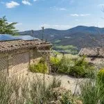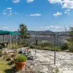 The fully fenced garden covers 12,000 sqm and includes olive trees, mature plants, and a small organic orchard. A 12 × 6 metre swimming pool is positioned at the highest point of the property, offering open views of the surrounding countryside.